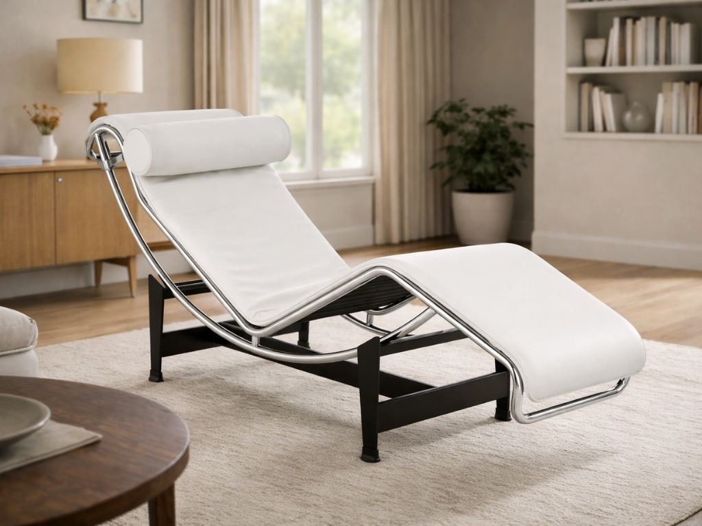 De LC4 Chaise Longue, ontworpen door Le Corbusier, Pierre Jeanneret en Charlotte Perriand, is een van de meest iconische ligbedden uit de 20e eeuw. Ook wel bekend als de "relaxstoel" of "machine voor ontspanning", is dit designstuk ontworpen met de menselijke anatomie in gedachten. Het LC4 ligbed in wit leer, dat wij bij Meubeldistrict aanbieden, biedt een perfecte combinatie van elegantie, comfort en functionaliteit.