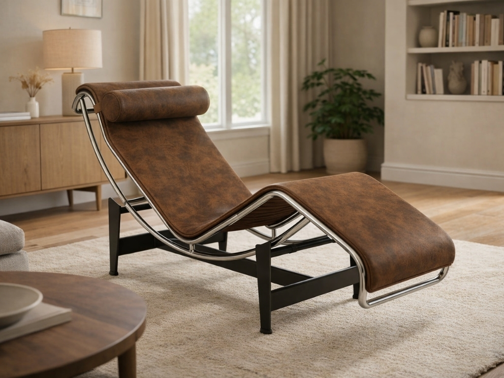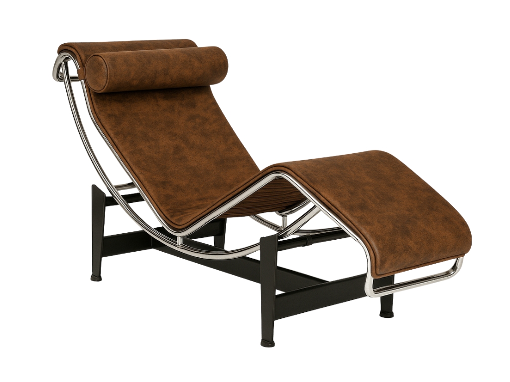 De Cassina LC4 chaise longue is een luxe ligstoel met bruin suéde leer. Het ontwerp komt uit 1928 en is gemaakt door Le Corbusier, Jeanneret en Perriand. Deze loungestoel staat bekend om het mooie design en het hoge comfort. Je kunt de positie van de stoel makkelijk aanpassen zodat je altijd lekker ligt. De bekleding is van zacht suéde leer en de stoel heeft een stevig metalen onderstel.