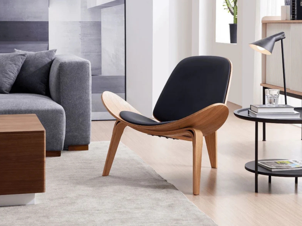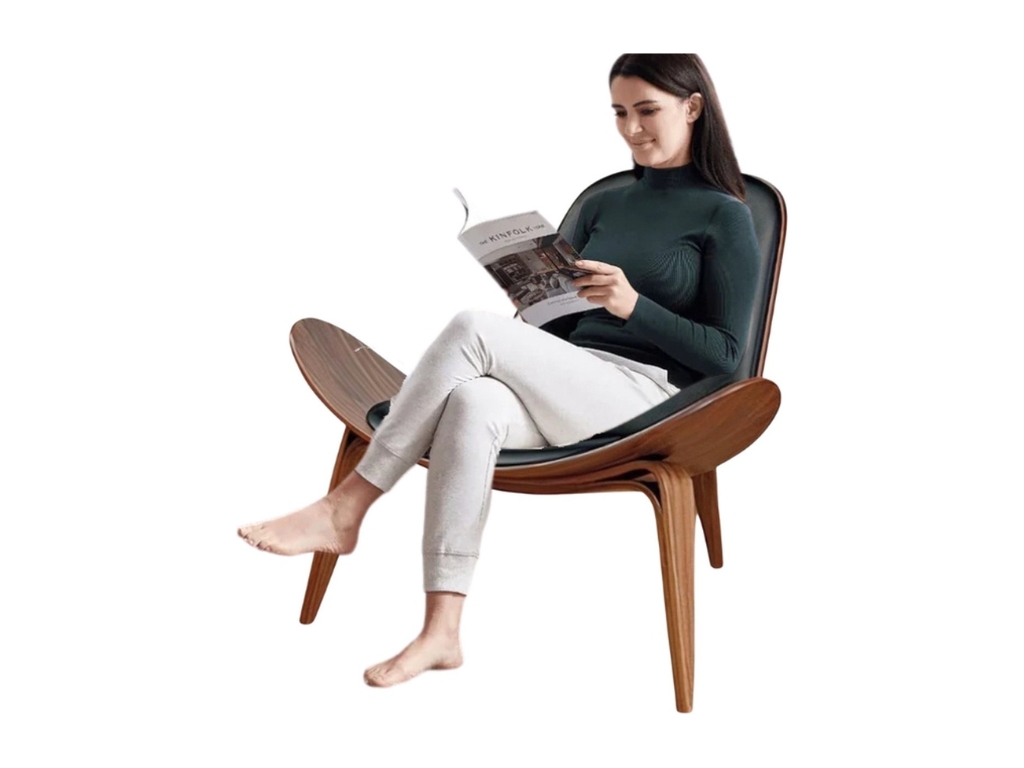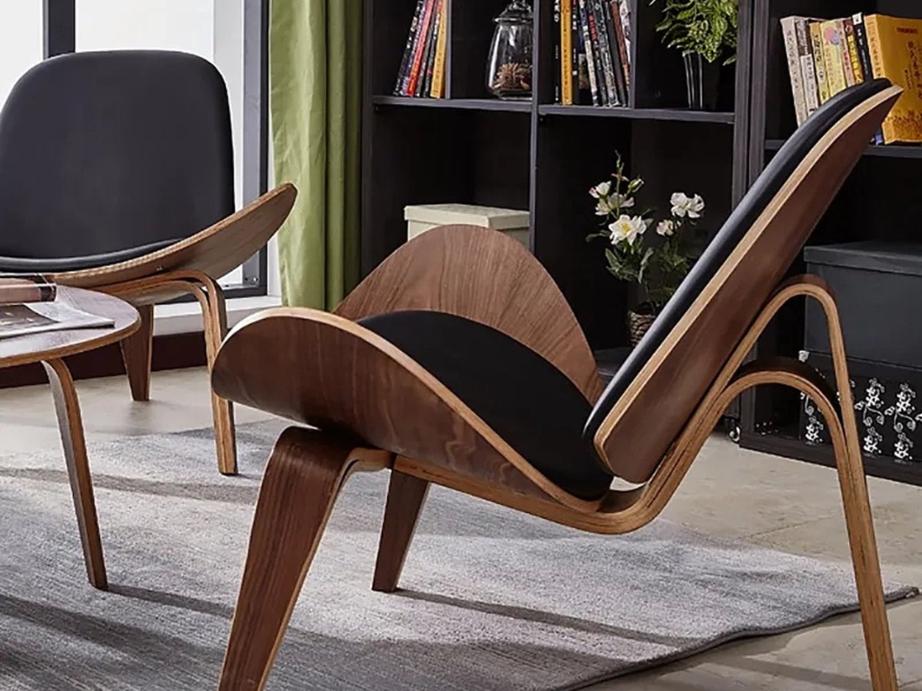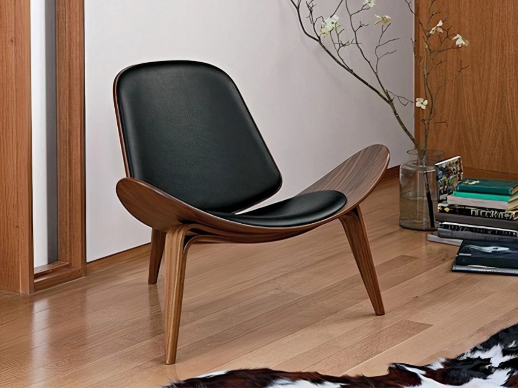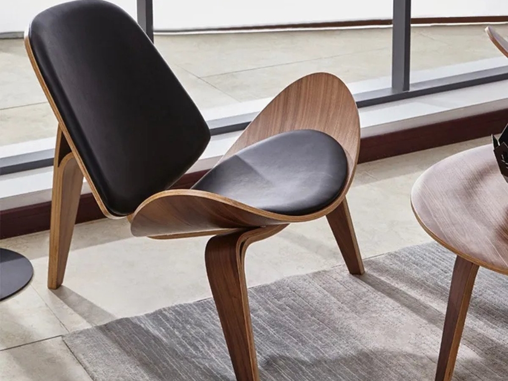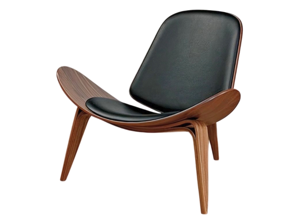 Shell Chair walnoot is een iconisch ontwerp met perfect gebogen hout. Het frame is gemaakt van 6-laags hout, wat zorgt voor zowel stevigheid als flexibiliteit. Het zitgedeelte is bekleed met hoogwaardig rundleer, dat comfort en luxe uitstraalt. Deze stoel past zich naadloos aan elk interieur aan, dankzij het tijdloze design. Het slanke en moderne profiel maakt het een stijlvolle toevoeging aan elke kamer.